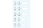 Effectuer les additions et soustractions de fractions demandées. Donner la réponse sous forme de fraction simplifiée. Ecrire les fractions avec /. Exemple : Ecrire la fraction $$\frac{3}{4}$$ sous la forme 3/4.